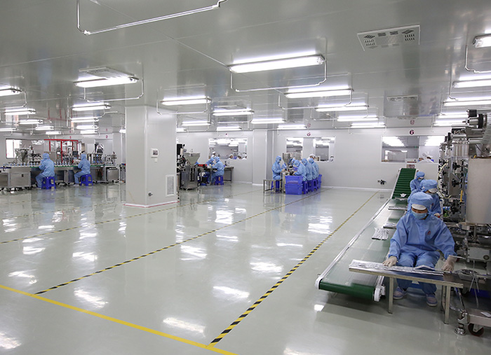 工廠按照GMP生產標準建設,參照美聯邦標準FS209E以及日本JIS(9920-1989)標準進行設計建造。6S管理原則,OEC工作法,高標準的生化研究室,確保技術優勢所需硬件要求。